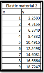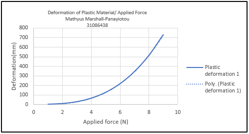 For ‘Elastic material 1’ there is a point in the x co-ordinates between 6 and 8 newtons of force where the deformation does not fit into the trendline produced in the graph. This could be due to many different reasons such as human error or previous damage to the material.